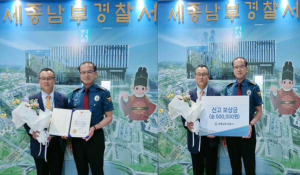 [충청뉴스 최형순 기자] 세종남부경찰서(서장 박성갑)은 세종~대전간 BRT 도로에서 갑자기 의식을 잃고 중앙분리대를 충격하며 서행하고 있는 승용차를 발견하고 승용차 운전자를 구조하여 더 큰 사고를 예방한 시내버스 승무 사원에게 감사장과 포상금을 수여하였다고 12일 밝혔다.