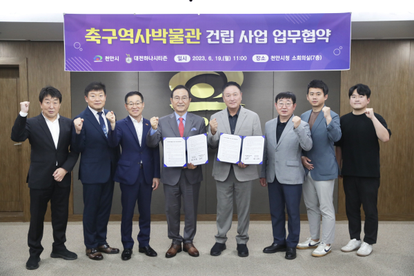 [충청뉴스 박동혁 기자] 충남 천안시는 19일 K리그 구단 중 세 번째로 대전하나시티즌과 ‘성공적인 축구역사박물관 건립 추진을 위한 업무협약’을 체결했다.