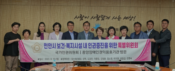 [충청뉴스 박동혁 기자] 천안시의회는 ‘보건·복지시설 내 인권증진을 위한 특별위원회(이하 인권특위)’가 지난 19일 국가인권위원회와 중앙장애인권익옹호기관을 방문해 인권 교육·보호 증진을 위한 의견을 나눴다고 21일 밝혔다.