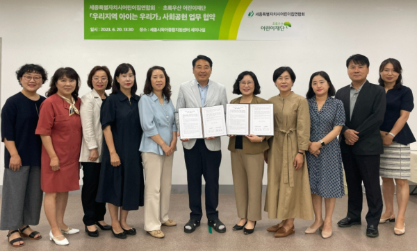 [충청뉴스 최형순 기자] 초록우산 어린이재단 세종지역본부(본부장 박미애)와 세종시어린이집 연합회(회장 육태유)가 사회공헌 업무협약을 체결했다.