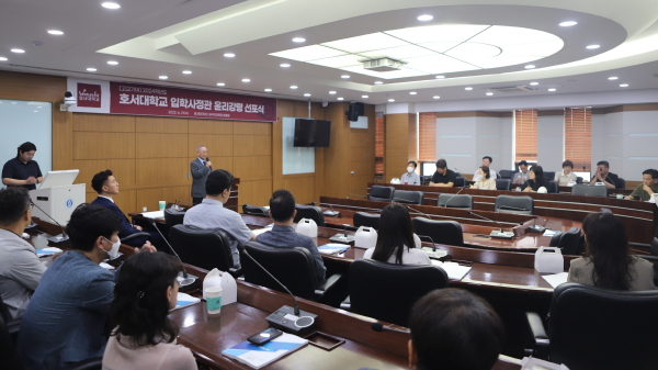 [충청뉴스 박동혁 기자] 호서대학교는 2024학년도 학생부종합전형을 위한 ‘입학사정관 윤리강령 선포식’을 강석규교육관에서 개최했다고 22일 밝혔다.