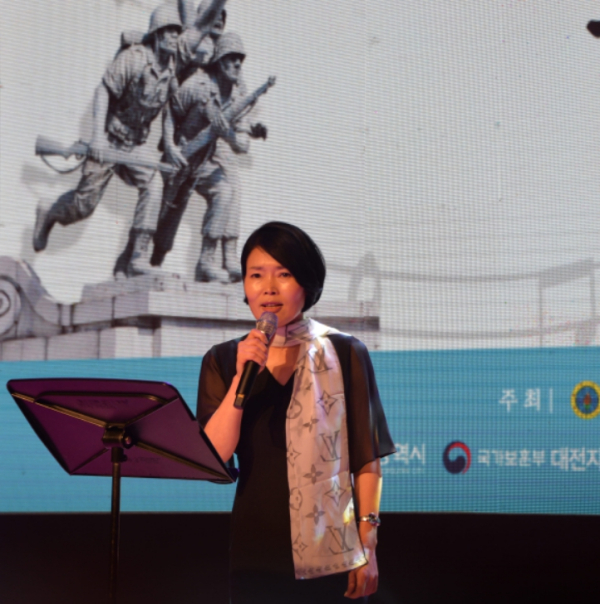 이어 변규리 대표는 2013년 보훈문예작품 공모전에서 수상한 김연웅 씨의 추모 헌시 '옥토'를 담담한 목소리로 낭송해 듣는 이들을 숙연하게 했다.