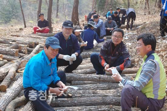 이날 봉사활동에 참여한 15개 충남지역 노조지부장을 비롯한 집행간부 60여명은 2개조로 나누어 1조는 바쁜 버섯종균접종시기에 맞춰 참나무에 구멍을 뚫어 종균을 접종하고, 2조는 맥문동 수확 작업을 실시했다.버섯종균 접종은 사람 손으로 종균을 하나하나 넣는 일로 세심함이 요구되는 힘든 작업인 동시에 일년 버섯농사를 좌우하게 되는 중요한 과정이다.