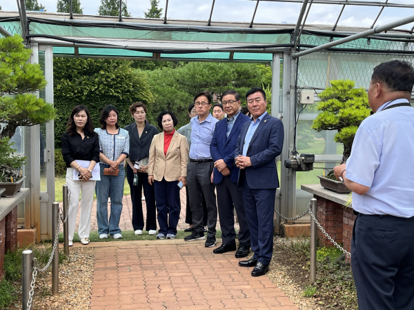 연암대 분재온실에 방문한 천안시의회 행안위 위원들/천안시의회 제공