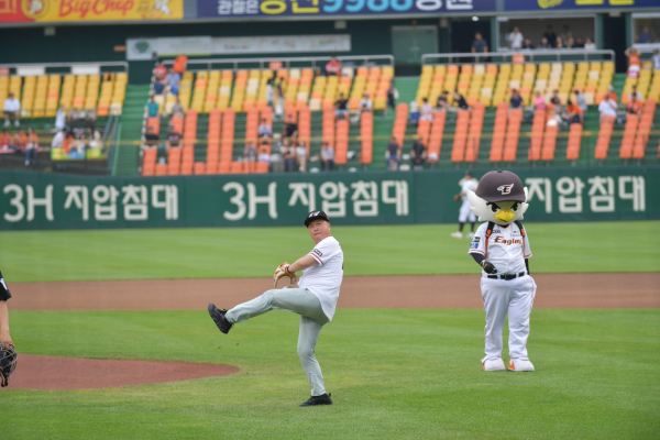 또한 한화이글스가 마련한 ‘예가정성의 날’ 행사를 위해 야구장을 찾은 최재구 군수는 시구에도 나서 한화이글스의 승리를 기원했다.