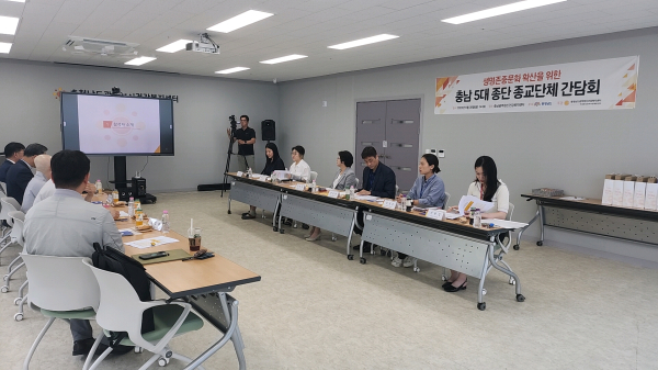 이번 간담회에는 대한불교조계종 제6교구 본사 마곡사, 대한불교조계종 제7교구 본사 수덕사, 충남기독교총연합회, 천주교 대전교구 평신도사도직단체협의회, 원불교 대전·충남교구 등 도내 4대 종단이 참석했다.