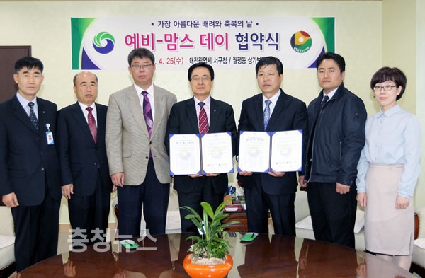 서구청에 따르면 출산 친화적인 사회분위기 확산과 최적의 출산환경이 조성될 수 있도록 임신부에 대한 지원과 배려를 위해 지난 13일 (주)한화타임월드점과의 협약 체결에 이어 월평동 상가번영회(회장 이승주)와 ‘예비-맘스 데이’ 운영 협약을 25일 체결했다.