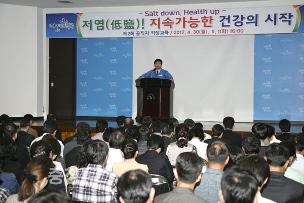 대덕구(구청장 정용기)는 지난 30일과 1일 양일간 구청 대강당에서 전 직원이 참석한 가운데‘<Salt down, Health up> 저염(低鹽)! 지속가능한 건강의 시작’이라는 주제로 제2회 공직자 직장교육을 실시했다.