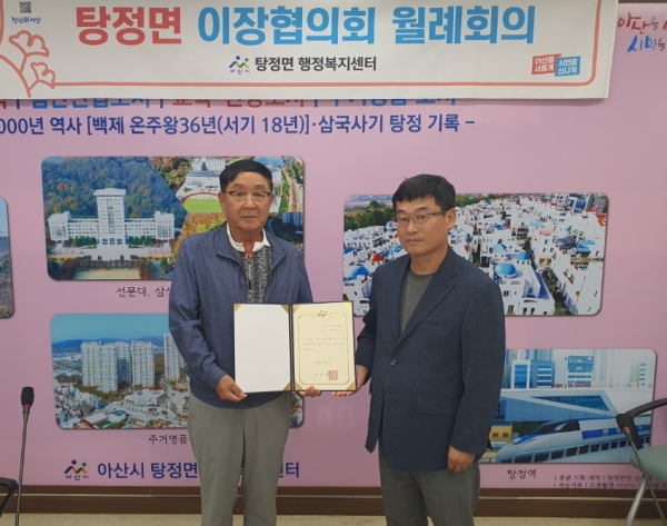 시는 아동지킴이로 새롭게 추천된 탕정면 이장 10명에게 지난 11일 위촉장을 수여했다.