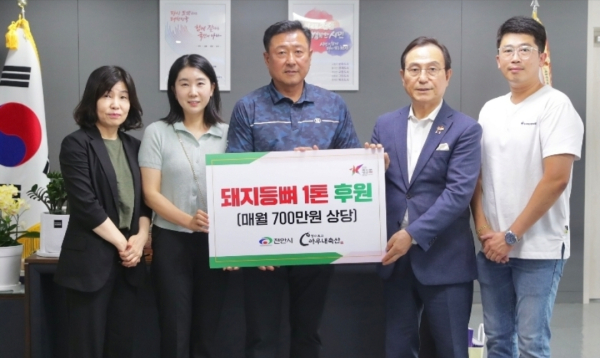 ㈜아우내축산, 천안시에 돼지등뼈 1t ‘매달 기부’
