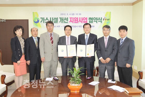 대전시 서구(구청장 박환용)는 4일 기초생활수급자 및 차상위 계층에 대한 LP가스 사용시설 개선사업 시행을 위해 한국가스안전공사 대전충남지역본부와 ‘가스시설 개선 지원사업’ 협약을 서구청 다목적실에서 체결했다.