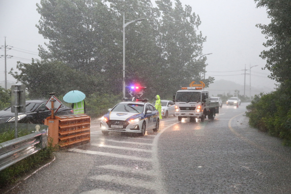 이곳은 새벽 5시부터 최초 통제가 시작된 이후 오전 7시 20분 일시 해제가 됐으나 다시 굵어진 빗줄기로 8시 40분부터 다시 통제가 시작되었다.
