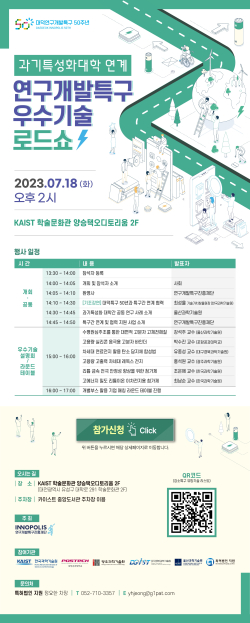 이번 우수기술 로드쇼는 대덕특구 50주년을 계기로 강소특구와 광역특구 내 과기특성화대학이 함께 협력체계를 공고화하고, 과기특성화대학이 개별적으로 보유하고 있는 국가전략기술 등 미래선도 기술을 지역기업·예비창업자들에게 공유할 수 있는 자리로 마련됐다.