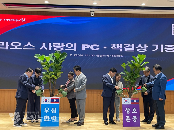 도는 19일 도청 대회의실에서 김태흠 지사와 김지철 도교육감, 홍성현 도의회 부의장, 유현숙 라오스 명예대사 겸 (사)나눔문화예술협회 이사장, 도의원 등이 참석한 가운데 ‘사랑의 컴퓨터·책걸상 기증식’을 개최했다고 밝혔다.
