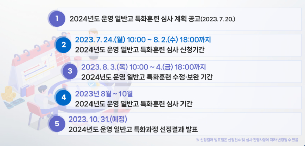 일반고 특화훈련 심사 추진일정(안)/한기대 제공