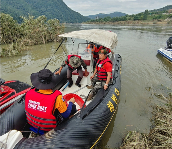 김충식 대원은 “폭염과 비가 계속 내리는 악조건에서도 40여명의 해병대전우회 대원들과 함께 실종자를 찾을때까지 최선을 다하겠다”고 밝혔다.
