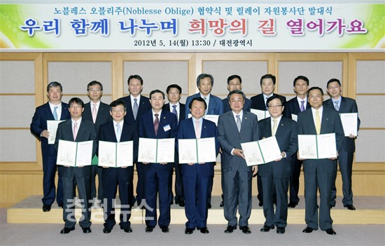 대전시가 민‧관 협력 사회공헌사업인 자원봉사활동 추진을 위해 기업과 단체, 학교 등과 협약을 맺고‘노블레스 오블리주(Noblesse Oblige)’실천 운동에 본격 나선다.