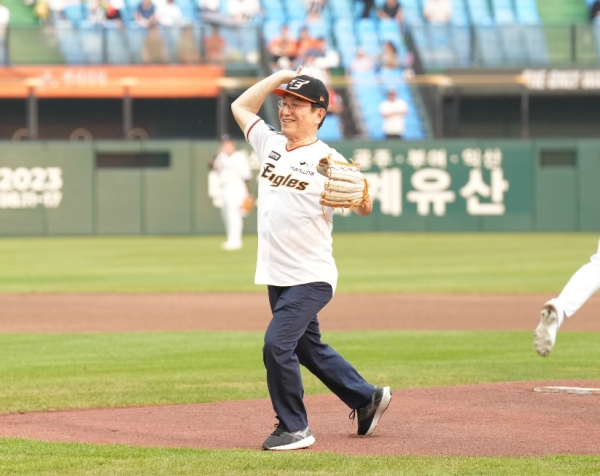 [충청뉴스 박동혁 기자] 박상돈 천안시장이 대전 이글스파크에서 ‘2023 천안 K-컬처 박람회의 성공적인 개최를 기원하는 시구에 나섰다.