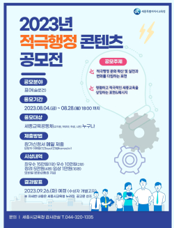 [충청뉴스 최형순 기자] 세종시교육청은 기관의 적극행정 브랜드를 구축하기 위해 ‘2023년 적극행정 콘텐츠(표어) 공모전’을 개최한다.