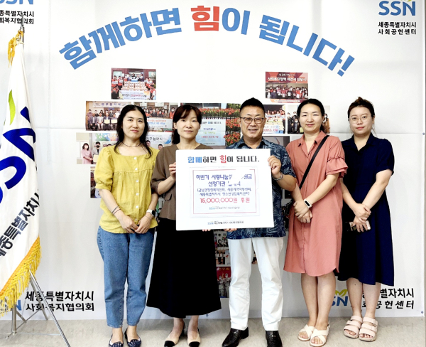 [충청뉴스 최형순 기자] 세종시사회복지협의회(회장 김부유, 이하 ‘협의회’)사회공헌센터는 4일 지자체나 사회복지기관 관계자가 참석하여 선정된 기관에 ‘2023년 하반기 사랑 나눔 실천 후원금 전달식’을 진행했다.