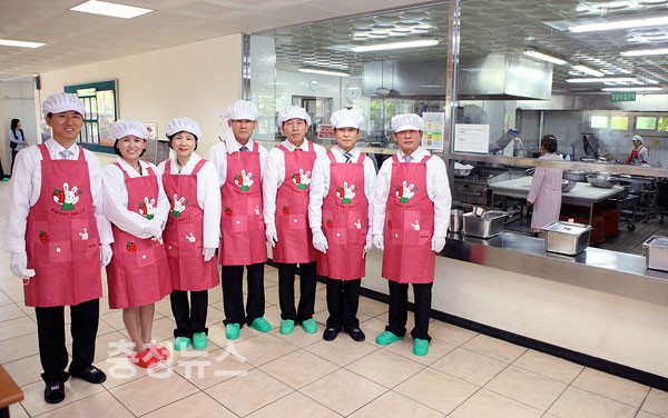 ▲ 대전광역시 시의회 교육위원회 의원들이 문지유치원을 방문해 배식봉사활동에 나섰다.