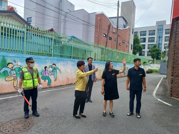 [충청뉴스 이성현 기자] 대전광역시동부교육지원청 고유빈 교육장(사진 왼쪽 두번째)이 대전대흥초등학교를 방문하여 외부위협 사건·사고 예방을 위한 학교 안전 특별 점검을 하고 학교 현장의 의견을 듣고 있다.