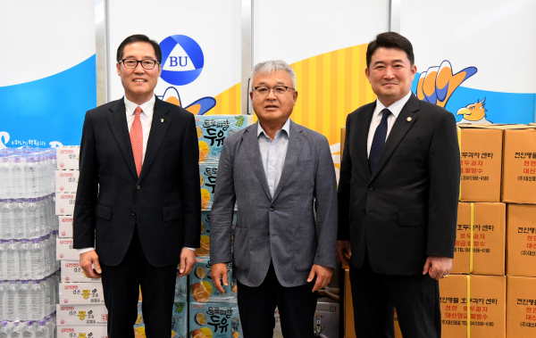 또한 충남북부상공회의소 회원사 중 하나인 삼육두유는 두유 3,200개, 대신제과는 호두과자 1,600인분을 보내왔다.