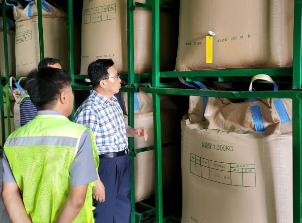 [충청뉴스 최형순 기자] 한국농수산식품유통공사 김춘진 사장은 9일 공사에서 운영하는 최대시설인 이천비축기지를 찾아 태풍 등 자연 재난 및 안전사고 예방을 위한 사전 안전 점검과 비축농산물 보관현황을 점검했다.