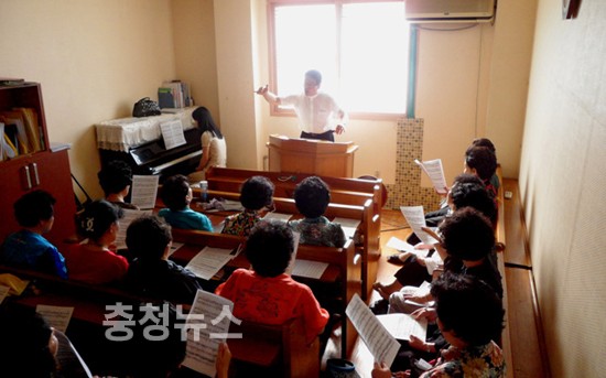 ▲ '효뿌리 합창단' 첫 연습을 하고 있다.