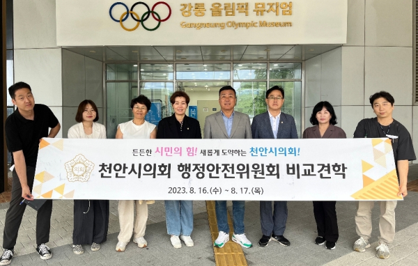 [충청뉴스 박동혁 기자] 천안시의회 행정안전위원회는 지난 16~17일 천안시의 자매도시인 인제군을 비롯해 인근 강릉시와 태백시 비교견학을 실시했다고 22일 밝혔다.