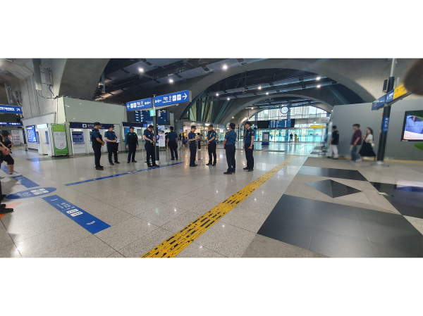 이날 유 청장은, KTX 천안아산역과 쌍용역을 방문하여 현장에 배치된 기동대, 지역경찰, 형사인력 등에 대한 근무상황을 직접 챙기고, 근무자와 악수를 청하며 무더운 날씨에도 국민의 안전을 위해 노력하는 현장 경찰관의 노고에 감사의 마음을 전했다.