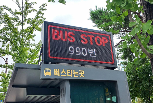 버스정보 스탑 시스템은 승객이 버스정류장에서 타려는 노선번호 버튼을 누르면 정류장 위에 설치된 전광판에 ‘버스 스탑(BUS STOP)’ 문구와 승차하려는 버스 노선번호가 표시되는 시스템이다.