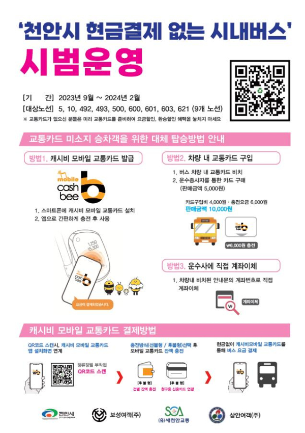 시범운영 기간 중 카드 미소지 승객들은 QR 코드를 통한 모바일 교통카드 발급, 차량 내 비치된 교통카드 구입, 요금 계좌이체 등 다양한 현금 대체 방법으로 시내버스를 탈 수 있다.