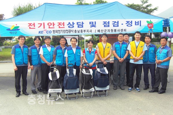 충남중부지사(지사장 이병배)는 31일 예산군자원봉사센터 및 봉사단체와 예산군 신양면 대흥면 소재 취약설비 고객의 전기안전점검 및 노후 전기설비 개·보수 봉사활동을 전개하여 더불어 살아가는 사회분위기를 조성하고, 직원의 자긍심 및 애사심을 함양했다.