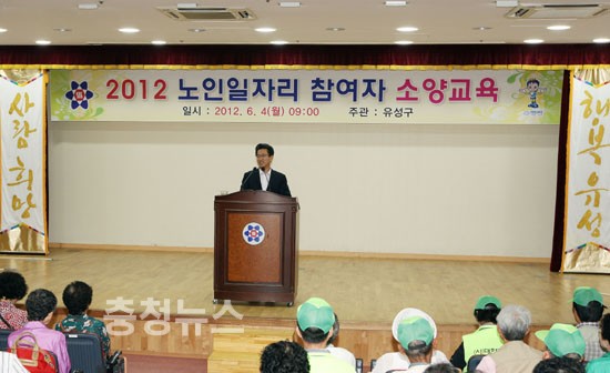 유성구(구청장 허태정)는 4일 구청 대강당에서 노인일자리 사업 참여자 200명이 참석한 가운데 “2012년 노인일자리사업 참여자 소양교육”을 실시했다.
