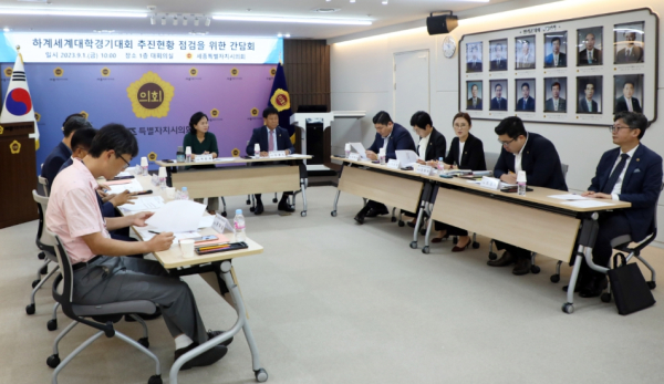 [충청뉴스 최형순 기자] 세종특별자치시의회 2027 하계세계대학경기대회 추진 특별위원회(위원장 김현미, 이하 특별위원회)는 지난 1일 의회 청사 대회의실에서 대회 추진현황 점검을 위한 간담회를 개최했다.