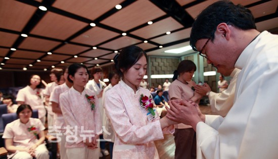 가톨릭대학교 대전성모병원 간호부(부장 송미경)는 12일 오후 3시 병원 9층 상지홀에서 간호사 91명을 대상으로 ‘손 축복식’을 실시했다.