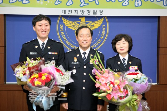 송영기 경장, 김용숙 경감으로 각각 특진의 영광 대전지방경찰청(청장 이상원)은 13일 청사 7층 소회의실에서 경찰청에서 상반기 특별승진임용을 실시했다. ▲ (왼쪽부터)송영기 경장, 이상원 청장, 김용숙 경감 대전경찰청 정보통신담당관실 송영기 순경은 정보통신업무 행정발전유공으로 경장으로, 대전대덕경찰서 여성청소년계 김용숙 경위는 학교폭력예방 행정발전유공으로 경감으로 각각 특진하는 영광과 함께 임용식을 가졌다. 저작권자 © 충청뉴스 무단전재 및 재배포 금지 문요나 기자 다른기사 보기 기사가 마음에 드셨나요? 충청뉴스 좋은 기사 후원하기 1,000원 3,000원 5,000원 10,000원 30,000원 50,000원 직접입력 비회원 약관동의하기 ※ 소중한 후원금은 더 좋은 기사를 만드는데 쓰겠습니다.