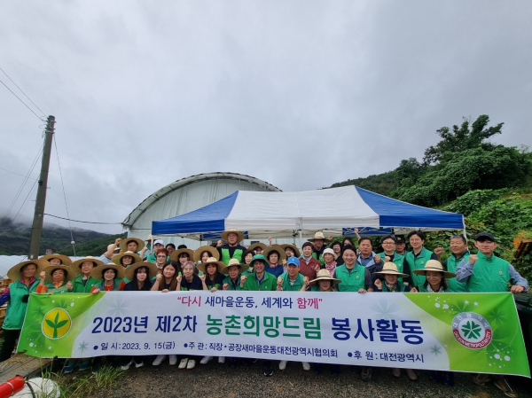 [충청뉴스 충청뉴스] 직장새마을운동대전광역시협의회(회장 박영복, 이하 직장시협의회)는 15일, 구직장회장, 시직장운영위원, 배재대 김하윤 지도교수를 비롯한 대학새마을동아리·청년새마을연대 회원 등 60여명이 참여한 가운데 우리 지역 서구 산직동을 찾아 「2023년 제2차 농촌희망드림, 고추수확 농촌일손돕기」사업을 실시했다고 밝혔다.