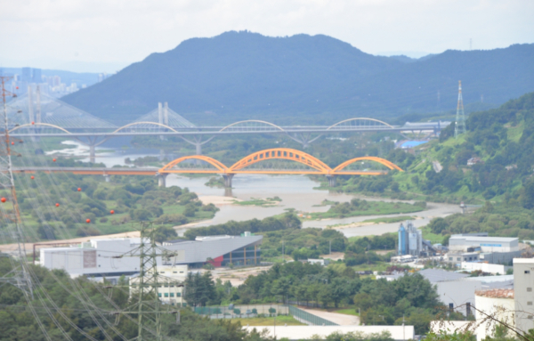 바로 아래에 부강산업단지가 있고, 금강을 가로지르는 3개의 다리들이 보인다. 금강 주변으로는 연동면 황우산과 금남면 부용봉이 보이고 그 사이로 저 멀리 전월산과 원수산이 조망된다.
