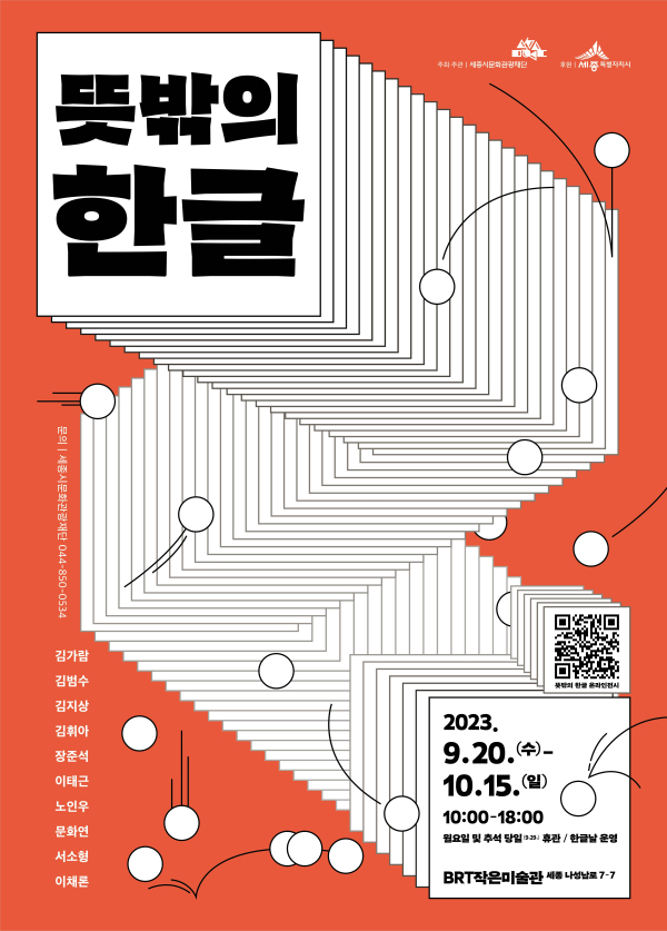 [충청뉴스 최형순 기자] 세종시문화관광재단(대표이사 김종률)은 오는 20일부터 BRT작은미술관에서 한글특화 기획전시 ‘뜻밖의 한글’을 개최한다.