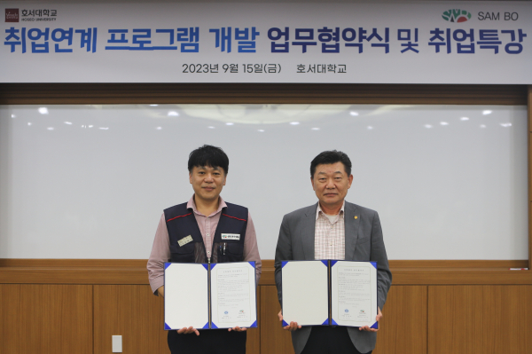[충청뉴스 박동혁 기자] 호서대학교는 ㈜삼보오토와 ‘취업연계 프로그램 개발’을 위한 업무협약을 맺고 취업특강을 개최했다고 21일 밝혔다.