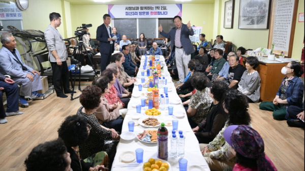 최민호 시장은 이날 오후 침산3리 경로당을 찾아 30여 명의 주민들과 주차난, 출퇴근 교통난 해소 방안 등에 대해 기탄없이 의견을 주고받았다.