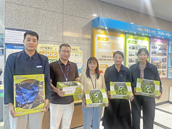 공단 직원들은 지난 26일 관내 인근 포도 농가가 직접 생산한 샤인머스캣, 머루포도 등 싱싱한 농산물을 구매했다.