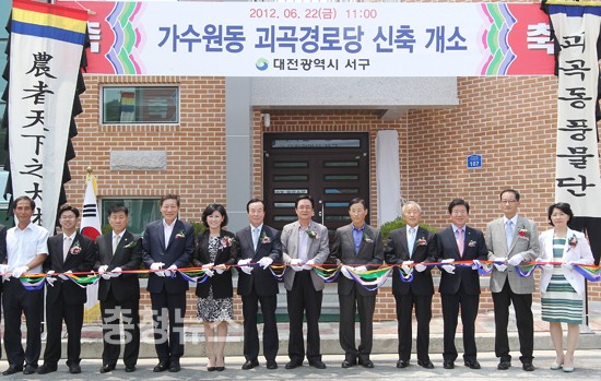 대전시 서구(구청장 박환용)는 지난 22일 가수원동에서 주민과 관계자 등 100여 명이 참석한 가운데 ‘괴곡경로당’ 개소식을 했다.