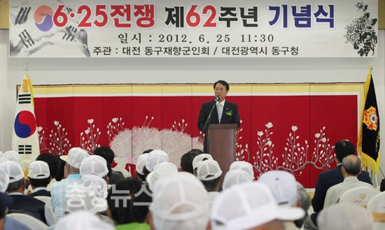 대전 동구(구청장 한현택)는 6·25전쟁 62주년을 맞아 25일 원동 바이올렛웨딩홀에서 참전 유공자 및 유족 등 600여명이 참석한 가운데 기념행사를 가졌다.