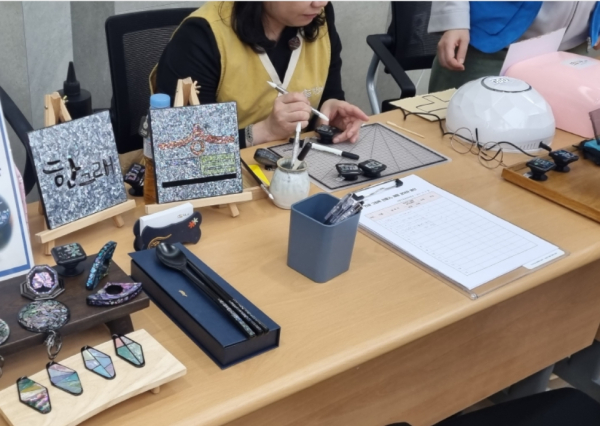 퀴즈와 궁중 요리 외에도, 방문객의 다양한 체험을 위해 세종 전통문화체험관 1층에서는 전통 나전을 활용한 한글 그립톡 만들기와 전통 놀이 체험이 진행되었다.