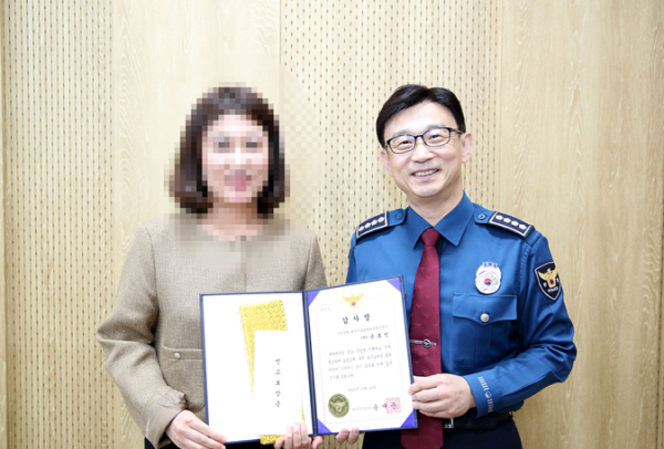 [충청뉴스 김윤아 기자] 대전유성경찰서(서장 송재준)는 10일 전화금융사기 피해를 예방한 신한은행 대덕테크노밸리금융센터점 은행원 A씨에게 감사장과 신고보상금을 수여했다.