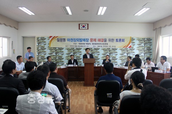 민주통합당 박범계(서구을) 의원은 지난 25일 대전 서구 월평1동 사무소에서 ‘월평동 마권장외발매장 문제해결을 위한 토론회’를 개최했다.