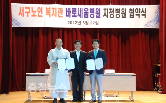 대전시 서구노인복지관(관장 장곡스님)과 바로세움병원(원장 황인석)이 27일 오후 1시 서구노인복지관에서 지정병원 협약식을 체결했다.